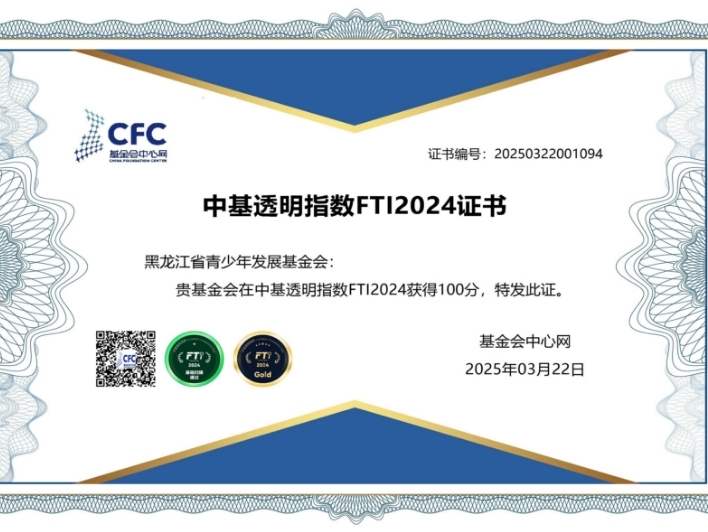 黑龍江省青少年發(fā)展基金會(huì)再獲“中基透明指數(shù)FTI2024”滿(mǎn)分