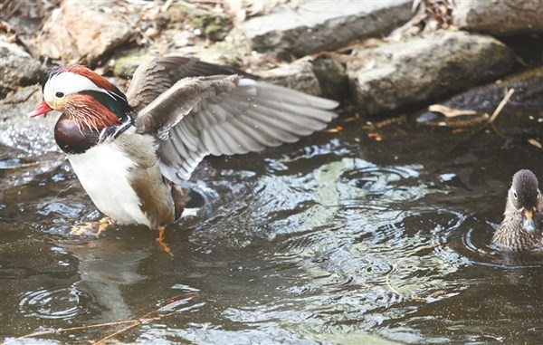野生鴛鴦陸續(xù)飛回哈爾濱市兆麟公園。