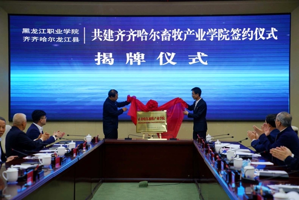 黑龍江經(jīng)濟網(wǎng)訊(李福山 王鴻儒 記者魏伯勤)為搭建校地校企合作平臺,聚焦產(chǎn)業(yè)人才短板,接軌應(yīng)用型院校人才培養(yǎng)體系,建立產(chǎn)業(yè)人才聯(lián)合培養(yǎng)機制,4月28日,黑龍江職業(yè)學(xué)院與龍江縣人民政府“共建齊齊哈爾畜牧產(chǎn)業(yè)學(xué)院”簽約儀式在齊齊哈爾市仙鶴賓館舉行。這次簽約是齊齊哈爾市“校企政”合作的一次有益探索,是產(chǎn)業(yè)人才培養(yǎng)、產(chǎn)教融合的新路徑、新載體,是推動齊齊哈爾全市畜牧業(yè)高質(zhì)量發(fā)展的一項重要舉措。