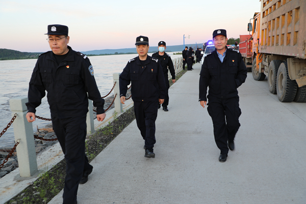 漠河市副市長(zhǎng)、公安局黨委書記、局長(zhǎng)姜明君,局黨委委員李永鳴、張華武分別帶領(lǐng)各突擊小分隊(duì)與北極鎮(zhèn)政府緊密對(duì)接,劃分責(zé)任片區(qū),定人定崗巡回查看黑龍江江堤水位、道路排水設(shè)施和人防工程等情況。突擊隊(duì)中,科級(jí)以上干部、部門負(fù)責(zé)同志近三分之一,黨員民警近五分之二,主動(dòng)請(qǐng)纓沖在防洪防汛第一線,充分發(fā)揮模范帶頭作用。
