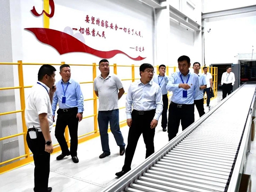 圖為李軍一行考察自動(dòng)傳輸集貨作業(yè)現(xiàn)場