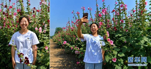 拼版照片:左圖為杜云芝在太原市小店區(qū)王吳村鮮花種植基地;右圖為杜云芝在鮮花種植基地進行直播(7月7日攝)。今年30歲的杜云芝外出務(wù)工近10年,作為一名資深銷售人員,她有著豐富的直播經(jīng)驗。近年來,太原市小店區(qū)王吳村大力發(fā)展鄉(xiāng)村旅游,杜云芝回到家鄉(xiāng),用手機記錄鄉(xiāng)村變化,宣傳家鄉(xiāng)美景。