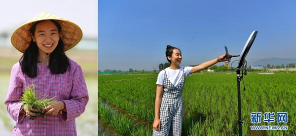 拼版照片:左圖為程玉嬌在太原市晉源區(qū)三家村水稻田里;右圖為程玉嬌在水稻田里進行直播(7月9日攝)。今年24歲的程玉嬌2019年留學(xué)回國后,選擇了返鄉(xiāng)創(chuàng)業(yè)發(fā)展稻魚菜綜合種養(yǎng)農(nóng)業(yè)。晉源區(qū)三家村出產(chǎn)的大米遠近聞名,程玉嬌在社交平臺上開通了雙語直播,在科普水稻知識的同時拓展銷售渠道,不僅生意做得風(fēng)風(fēng)火火,自己也變成了小有名氣的“網(wǎng)紅”。