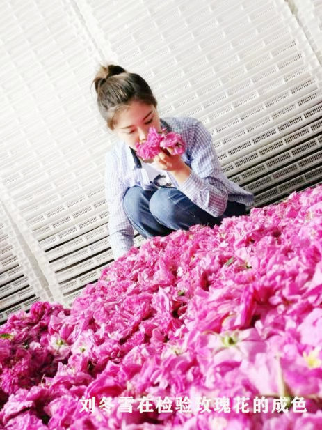 今年32歲的劉冬雪,從小就看著外公王占龍帶領(lǐng)父親及家人試種玫瑰花,剛開(kāi)始種植品種單一,種植面積小,玫瑰產(chǎn)量低。2009年,正在讀高中的劉冬雪,在外公和父親的影響下,加入到玫瑰花種植工作中,幫助老輩管理生產(chǎn)、銷(xiāo)路、產(chǎn)品創(chuàng)新等多個(gè)環(huán)節(jié)。劉冬雪有文化、肯專(zhuān)研,女孩子對(duì)玫瑰花更是情有獨(dú)鐘,父輩一商量將合作社經(jīng)理的重?fù)?dān)就交給了她。劉冬雪深知近年隨著玫瑰面積和產(chǎn)量的不斷提高,他們還是家庭小作坊模式,“單打獨(dú)斗”地跑市場(chǎng),只能是小打小鬧。為此,她跑市場(chǎng)、找銷(xiāo)路、先后到云南、山東等地考察,了解鮮花生產(chǎn)和銷(xiāo)售。并函授學(xué)習(xí)了林農(nóng)大專(zhuān)課程,不斷更新鮮花品種,提升鮮花品質(zhì),逐步打開(kāi)了鮮花銷(xiāo)路。劉冬雪也深入思考,只賣(mài)原材料經(jīng)受不了市場(chǎng)的考驗(yàn),她夢(mèng)想建一個(gè)玫瑰花深加工企業(yè),但是,因缺少資金遲遲沒(méi)有實(shí)現(xiàn)心中的愿望。