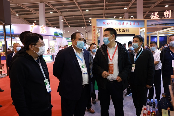 在開館當(dāng)天上午,國(guó)家林草局總經(jīng)濟(jì)師楊超,國(guó)家林草局發(fā)改司副司長(zhǎng)蘇祖云,在大興安嶺林業(yè)集團(tuán)公司黨委副書記、總經(jīng)理李軍的陪同下,進(jìn)行巡館。李軍向楊超、蘇祖云重點(diǎn)介紹了北極冰藍(lán)莓酒莊生產(chǎn)的冰酒、雪酒、白蘭地,連續(xù)多年在國(guó)際葡萄酒大賽上榮獲大金獎(jiǎng)、金獎(jiǎng),吸引了眾多人的注意,并當(dāng)場(chǎng)品嘗了冰酒,高度評(píng)價(jià)了該產(chǎn)品的口感與質(zhì)量。