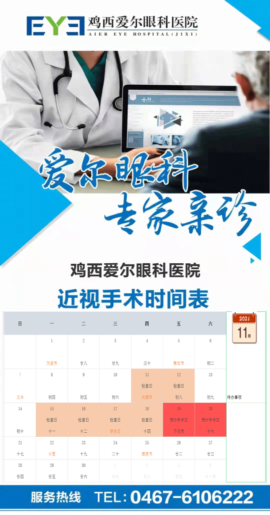 雞西愛爾眼科醫(yī)院近視手術(shù)時(shí)間表: