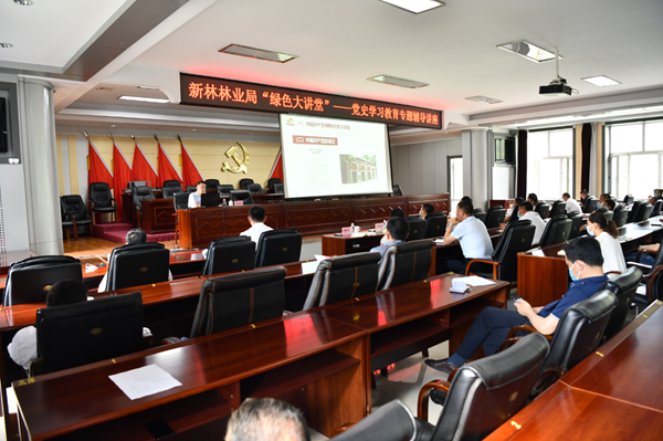 圖為新林林業(yè)局舉辦“綠色大講堂”黨史學(xué)習(xí)教育專題輔導(dǎo)講座現(xiàn)場(chǎng)(趙文財(cái)/攝)