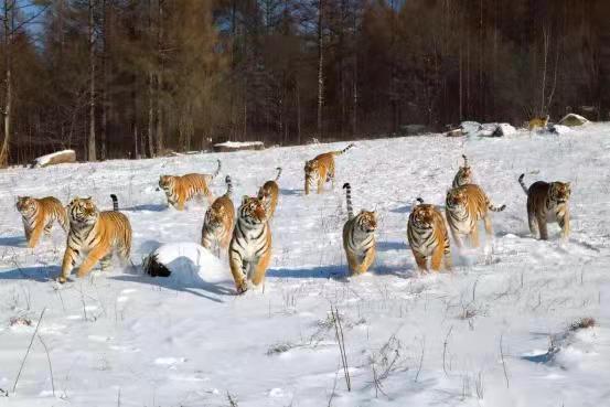 令人震撼的鏡泊湖吊水樓的冰瀑是牡丹江冬季的重要景點之一。在冰凌交錯、銀裝素裹的純凈世界里,世界吉尼斯紀錄創(chuàng)造者——中國懸崖跳水奇人狄煥然,在零下二十多度的鏡泊湖吊水樓冰瀑上,伸展雙臂,凌空一躍,撲向不結冰的黑龍?zhí)端?,跳入落差?0米的水中,成為鏡泊湖景區(qū)冬季的一道獨特景觀。鏡泊湖水系水質較好,水產(chǎn)資源極為豐富,大約有六十多種魚,冬季體驗鏡泊湖的大網(wǎng)捕魚、小網(wǎng)掛魚,在每年辭舊迎新之際看一場冬捕,絕對是預示著年年有余好兆頭的絕佳體驗。在漁夫們高亢的號子聲中,800多米長的大網(wǎng)從冰洞中漸漸滑出,胖頭魚、鯽魚、鯉魚等翻滾著、跳躍著,冒著熱氣蹦到冰面,“萬尾鮮魚出玉門”的奇觀景象讓人感嘆不已。橫道東北虎林園是世界上最大的東北虎人工飼養(yǎng)繁育基地和野化訓練基地。在幾代養(yǎng)虎人的辛勤努力下,已繁育活體東北虎1100余只,建有猛虎園、靈長類館、幼虎生態(tài)館、高空玻璃棧道、珍稀動物觀賞園、科普展覽館、觀虎長廊、虎文化廣場等多個景點。在這里,可以感受到獸中之王奔跑在蒼茫林海雪原的風馳電掣。也可以感受到成群東北虎躺臥在皚皚白雪“互談心事”的百般愜意,還可以領略到虎牛相斗、群虎撲食的驚險刺激。