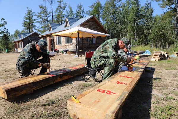 阿木爾林業(yè)局職工為興安林場精品民宿打T型混凝土方墩底座(王力 攝)