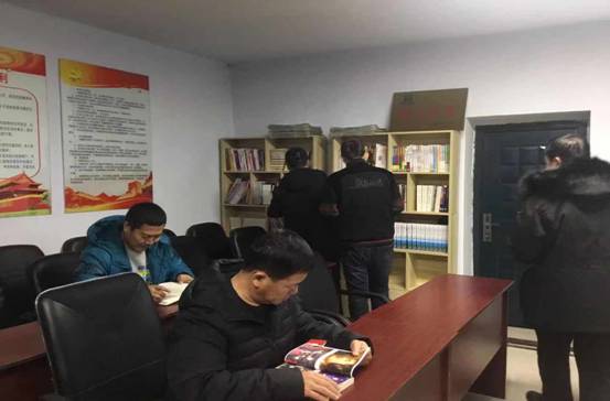 黨員干部們在會議室認真閱讀黨刊黨史等書籍。互相交流讀后心得體會,感悟革命前輩事跡的偉大歷史。發(fā)揚革命先進事跡,做新時代接班人。