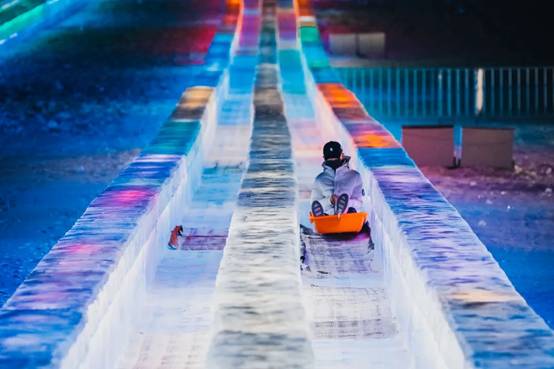 作為哈爾濱冰雪大世界最具人氣的游樂項(xiàng)目,今年的超級冰滑梯滑道長達(dá)423米,高低落差達(dá)21米,100米滑行速度快過蘇炳添創(chuàng)造的9秒83新亞洲紀(jì)錄,游客乘坐大滑梯時(shí)也能體驗(yàn)一把飛人的感覺。
