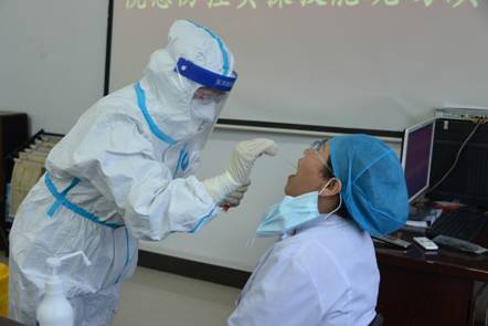 本次演練將歷時(shí)1周,院領(lǐng)導(dǎo)班子成員組成考核組,對(duì)各科室醫(yī)務(wù)人員逐一考核。演練共包括七步洗手法步驟、穿脫防護(hù)服流程、氯制劑消殺配制方法、核酸標(biāo)本采集操作流程、“百日平安守護(hù)行動(dòng)”應(yīng)知應(yīng)會(huì)五個(gè)環(huán)節(jié)。演練現(xiàn)場(chǎng),考核組觀摩每名醫(yī)務(wù)人員實(shí)操全過程,現(xiàn)場(chǎng)提問應(yīng)知應(yīng)會(huì)、院感防控知識(shí),并進(jìn)行點(diǎn)評(píng)、糾正,提高醫(yī)務(wù)人員實(shí)際操作能力,熟練掌握院感防控知識(shí)要點(diǎn)。