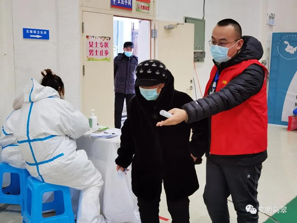 “身份證忘帶了能檢測(cè)上嗎?在哪看結(jié)果???”面對(duì)群眾們的疑問(wèn),志愿者們都一一耐心詳細(xì)解答,為核酸采樣工作營(yíng)造有序、良好的環(huán)境,提高了檢測(cè)效率,在嚴(yán)寒中縮短群眾排隊(duì)等候時(shí)間,獲得群眾的一致好評(píng)。