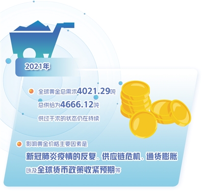 方正中期期貨有限公司貴金屬研究員史家亮認為,2021年,全球黃金總需求4021.29噸,總供給為4666.12噸,供過于求的狀態(tài)仍在持續(xù)。不過,黃金價格并沒有持續(xù)大幅回落,主因在于黃金的商品屬性對價格的影響仍在弱化,黃金的債券屬性和貨幣屬性是黃金價格走勢的核心影響因素,而這又與美聯(lián)儲貨幣政策走勢密切相關(guān)。