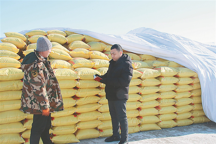 日前,在北大荒集團(tuán)趙光農(nóng)場(chǎng)有限公司第六管理區(qū)曬場(chǎng)上,幾個(gè)人正在對(duì)碼放整齊的化肥進(jìn)行盤(pán)點(diǎn),其中一個(gè)人認(rèn)真地做著記錄,他就是農(nóng)場(chǎng)第六管理區(qū)種植戶劉明亮。