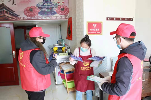 “你好,請掃‘龍江健康碼’,謝謝!”“你好,請問從哪邊過來?有沒有做核酸檢測?”在新林鎮(zhèn)南出口,志愿者們協(xié)助卡口防疫工作人員,進行防火、防疫宣傳,并向外來人員發(fā)放防火宣傳單,進行防火宣傳教育,用志愿的力量,積極協(xié)助配合防疫一線防疫工作。針對部分行人不佩戴口罩的現(xiàn)象,志愿者們?yōu)樗麄儼l(fā)放口罩,倡導(dǎo)大家從自身做起,科學(xué)認(rèn)識疫情、增強防范意識。