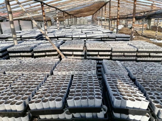 呼中林業(yè)局中心苗圃輕基質容器育苗杯數(shù)量已完成10萬+(陳東輝 攝)
