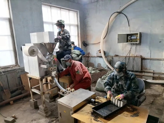 根據(jù)設備操作指南,呼中林業(yè)局中心苗圃從3月中旬便開始著手生產(chǎn)作業(yè),工作中他們采用機械與人工相結合的方式,每天加班加點、技術人員跟班作業(yè)。同時,為加快生產(chǎn)進度,他們還租用一臺挖掘機,將凍土原料運送到圃內大棚,并用燒爐解凍烘干的方法,與珍珠巖肥料按一定比例混合成基制,再用機器灌裝成型,每日生產(chǎn)可達8000余個。截至目前,已完成輕基質容器育苗杯生產(chǎn)10萬+。