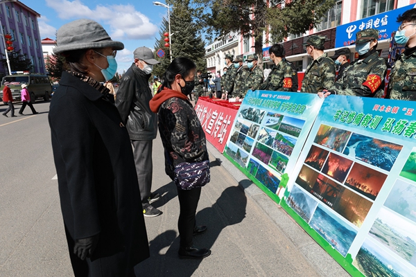 林業(yè)局還在人員密集場所設(shè)立宣傳臺(tái)、宣傳圖版,懸掛宣傳條幅,設(shè)立音箱循環(huán)播放“五·六”大火發(fā)生過程及損失情況。并向過往行人發(fā)放宣傳單,講解森林防火的重要意義,普及森林防火知識。同時(shí),利用傳統(tǒng)媒體播放“五·六”火災(zāi)電教片,全方位、多角度、深層次地開展反思活動(dòng),掀起森林防火宣傳工作新高潮。