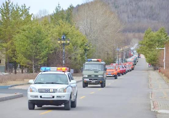 8時(shí)58分,在警笛的長(zhǎng)鳴聲中,宣傳活動(dòng)正式開始。由警車,森防運(yùn)兵車、機(jī)具車等37臺(tái)車輛組成了聲勢(shì)浩大的巡游車隊(duì),沿新林鎮(zhèn)人民路出發(fā)環(huán)城巡游,一路鳴笛警示,提高職工群眾防火意識(shí),做到警鐘長(zhǎng)鳴,擴(kuò)大森林防火宣傳面。