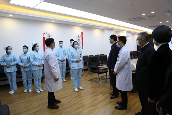 在市第五人民醫(yī)院(市傳染病醫(yī)院),隋洪波先后來到負壓病房、手術室、ICU病房了解醫(yī)院建設情況,與護士代表親切交流并致以節(jié)日問候,現(xiàn)場向大家宣講省第十三次黨代會精神。他指出,市傳染病醫(yī)院新建項目竣工投用后,醫(yī)院硬件設施和醫(yī)療設備都有了很大提升,為建設高水平專業(yè)醫(yī)院奠定了堅實基礎。要深入學習貫徹省第十三次黨代會精神,切實把省黨代會精神轉(zhuǎn)化為民服務的實際行動,持續(xù)加強醫(yī)護隊伍建設,從健全完善規(guī)章制度、規(guī)范診療流程和服務標準等方面入手,多措并舉提高醫(yī)療護理水平和服務質(zhì)量,做到軟件、硬件“雙提升”。