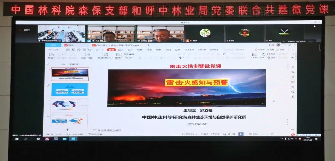 此次活動由中國林科院森保學科黨支部書記呂全主持,教授舒立福、學院研究所副所長趙文霞、研究員王小藝出席。中國林科院教授王明玉、趙鳳君、李偉克作雷擊火防范和預警相關(guān)科教專題授課,聯(lián)建雙方就如何推動黨建和業(yè)務雙促進、雙提升,展開了深入交流。