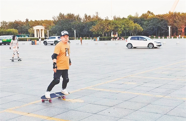 桀驁看起來(lái)40歲上下,但其實(shí)已經(jīng)47歲。看架勢(shì)他足夠嫻熟,但他告訴記者自己才滑了一個(gè)多月?!拔以韧媪藥啄陠伟寤⒍兑舫?磫伟寤┑囊曨l,今年初后臺(tái)總給我推送陸沖的內(nèi)容,看著看著喜歡上了,就買了板,和大家一起玩?!?/span>