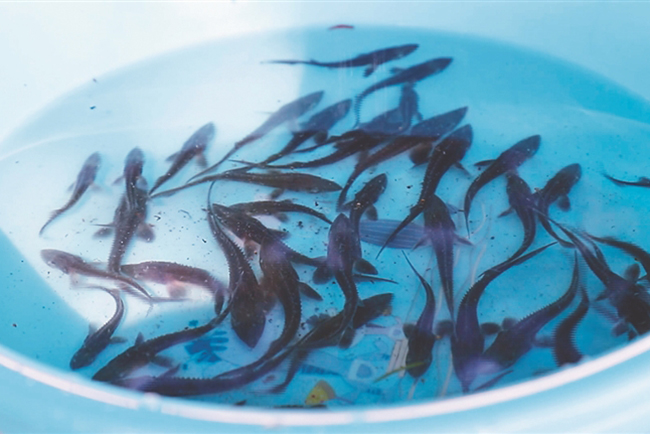 施氏鱘魚苗。 張瑤 黑龍江日報記者 劉劍攝