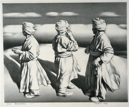 飄動(dòng)的白云之一 52.5×65.5cm 石版畫 1988年