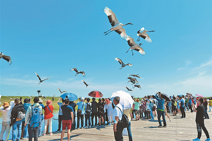 除了打冰球、吃烤肉,每支參賽球隊都會不約而同地去扎龍自然保護(hù)區(qū)賞鶴,同時奧悅水世界、龍沙動植物園、鶴城公園等旅游景點的游客接待量也激增。小冰球,讓鶴城旅游變得火熱。