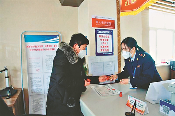 如今,凡是在密山市新注冊(cè)的企業(yè),都會(huì)享受到由密山市政務(wù)服務(wù)中心特制的 “免費(fèi)+”服務(wù)套餐——即為新注冊(cè)的企業(yè)免費(fèi)刻章、免費(fèi)復(fù)印、免費(fèi)快遞。2021年6月至今,密山市為新注冊(cè)的390家企業(yè)免費(fèi)刻制印章1560枚,免費(fèi)快寄印章、營(yíng)業(yè)執(zhí)照、房產(chǎn)證等1000余件,同時(shí)還為500多戶企業(yè)、30000多名群眾免費(fèi)復(fù)印各種材料。