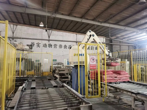 谷實(shí)生物集團(tuán)車(chē)間里的碼垛機(jī)器人。