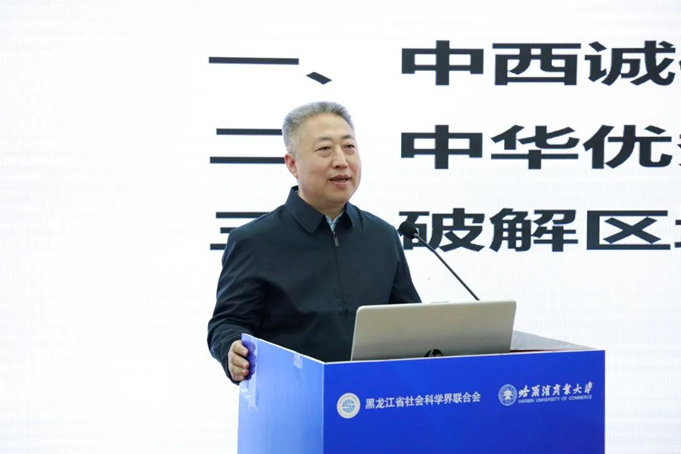 哈爾濱商業(yè)大學黨委書記孫先民致歡迎辭。他介紹了學校70余年辦學治校積累的豐富經(jīng)驗和豐碩成果,指出學校充分發(fā)揮學科專業(yè)研究方向及特色優(yōu)勢,在服務社會信用體系構(gòu)建、助力社會信用環(huán)境和營商環(huán)境優(yōu)化、服務新時代文明實踐、帶動全社會道德素質(zhì)和文明程度提升、服務商業(yè)模式實踐與創(chuàng)新、切實擔負起服務國家戰(zhàn)略、助力龍江發(fā)展的時代使命等方面取得了成果成效。
