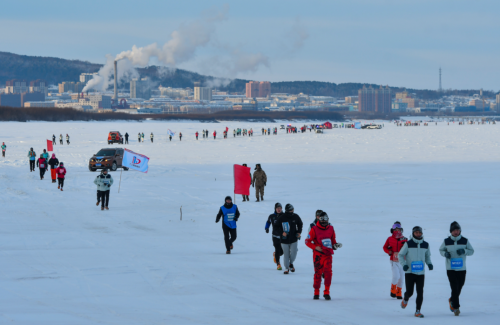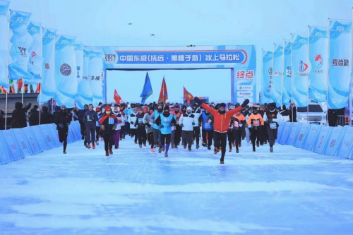 中國(guó)東極(撫遠(yuǎn)·黑瞎子島)冰上馬拉松賽已經(jīng)連續(xù)五屆在撫遠(yuǎn)市舉辦,憑借地域唯一性和極限挑戰(zhàn)性,成為全球五大冰上馬拉松之一,開創(chuàng)中國(guó)極限冰雪馬拉松運(yùn)動(dòng)的先河。本屆賽事由黑龍江省體育局、佳木斯市人民政府主辦,省政府黑瞎子島建設(shè)和管理委員會(huì)、撫遠(yuǎn)市人民政府承辦。中國(guó)奧委會(huì)副主席、中田協(xié)名譽(yù)主席段世杰前往比賽開幕式鳴槍。賽事設(shè)有全程馬拉松、半程馬拉松、新年歡樂跑三個(gè)項(xiàng)目。清晨7點(diǎn),撫遠(yuǎn)市的氣溫達(dá)到了零下23.3攝氏度,選手們紛紛帶上防風(fēng)面罩、保暖帽、手套、太陽鏡、防滑冰爪等應(yīng)對(duì)極端嚴(yán)寒環(huán)境下的特殊裝備,在全程42.195公里的冰賽道上,徒步穿越冰雪世界,體驗(yàn)當(dāng)?shù)鬲?dú)特冰雪文化和民俗風(fēng)情,品嘗賽道補(bǔ)給站提供的熱氣騰騰的鱘鰉魚鍋、鮮鯽魚湯等地方特色補(bǔ)給品,補(bǔ)充能量抵御嚴(yán)寒。