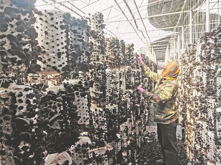 在各家的大棚內(nèi),采摘工分散在不同的角落,眼急手快地采摘著個(gè)頭足夠的黑木耳,手法嫻熟,儼然已是“老把式”。
