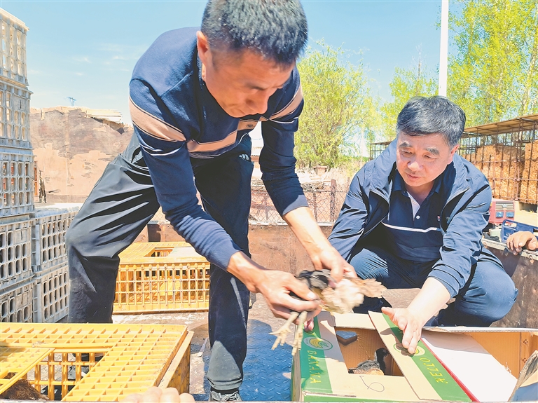 駐村工作隊將捐贈的濱麻雞雞雛送到農戶手中。本報記者 白云峰攝