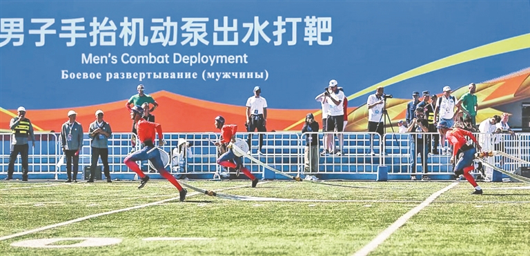 本報(bào)10日訊(記者蔡韜)10日,第19屆男子和第10屆女子世界消防救援錦標(biāo)賽圓滿閉幕。在當(dāng)日的比賽中,中國(guó)隊(duì)以25秒64獲女子手抬機(jī)動(dòng)泵出水打靶比賽冠軍,以27秒72獲男子手抬機(jī)動(dòng)泵出水打靶比賽第二名。