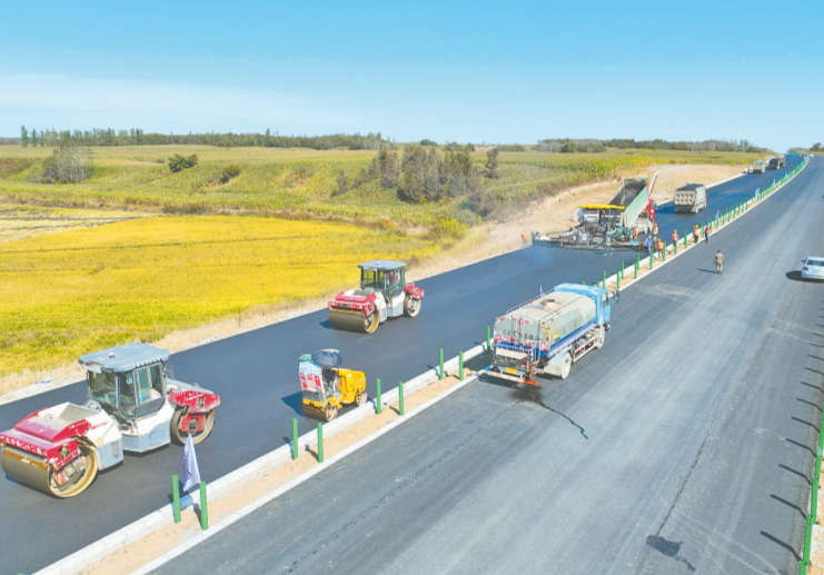 本報(bào)訊(丁旭 記者郭俊峰)秋高氣爽,施工黃金期。近日,記者在鐵科高速公路方正至延壽尚志界段項(xiàng)目K214瀝青攤鋪施工現(xiàn)場(chǎng)看到,大型攤鋪機(jī)正在進(jìn)行路面中面層的瀝青攤鋪,兩臺(tái)光輪壓路機(jī)對(duì)已攤鋪的瀝青進(jìn)行碾壓,工人各負(fù)其責(zé),有序施工。