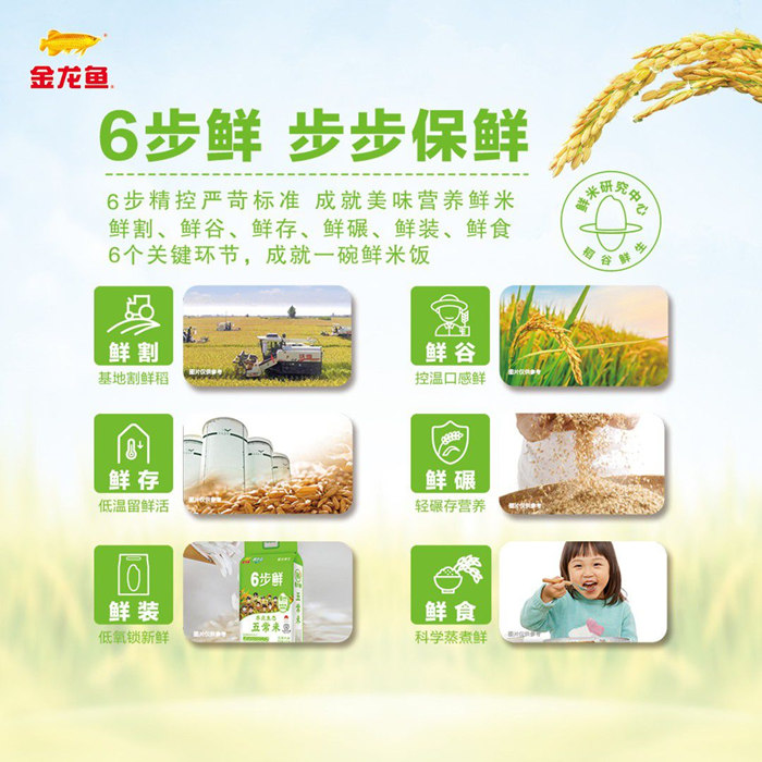 金龍魚的成績,離不開其長期以來對“新質(zhì)生產(chǎn)力”的深耕,金龍魚采用的稻谷6步鮮米精控技術(shù),便是科技創(chuàng)新在農(nóng)業(yè)領(lǐng)域的生動體現(xiàn)。在“鮮割、鮮谷、鮮存、鮮碾、鮮裝、鮮食”的各關(guān)鍵環(huán)節(jié)上,實(shí)現(xiàn)了田間到餐桌的全鏈路保鮮,也為稻谷的基因檢測、降低水分、科學(xué)存儲、適度加工、即碾即裝等重要階段提供了嚴(yán)苛保障。