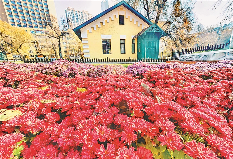 近日,哈爾濱市南崗區(qū)花園街旁,游客在修繕一新的“黃房子”前拍照留念。在滿地落葉襯托下,這些黃墻紅頂?shù)臍v史建筑更顯厚重感。房子周圍設(shè)有休閑座椅、歐式路燈、花壇、綠地等,方便人們散步、賞景。本報(bào)記者 蘇強(qiáng)攝