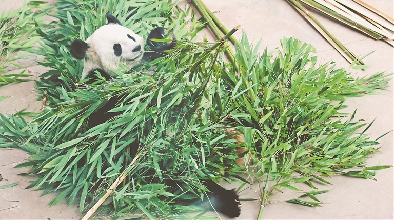 尤其是“佑佑”,曬著午后暖陽,坐在室外的雪地里,大口“狂炫”竹葉,這一口吃夠了,就尋覓著從雪里刨出來一根竹筍,秒變“剝筍小哥”?!坝佑印边€時(shí)不時(shí)停下來,盯著人群定格幾秒,仿佛是專門為游客拍照擺好姿勢(shì),令不少南方小伙伴感嘆“開了眼界”。