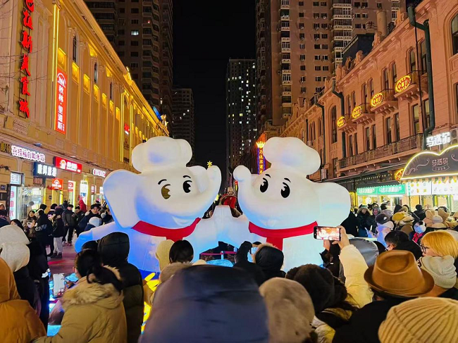 除了“白象”標(biāo)志性小象IP格外吸睛之外,因其與“對象”諧音的巧妙設(shè)計(jì),也吸引著往來行人紛紛駐足。雪雕前人潮涌動,不少市民游客在“對象”前合影留念。這一創(chuàng)意不僅為游客增添別樣的溫暖與歡樂,也在社交媒體掀起一陣“找對象”的熱潮?;顒悠陂g,“對象雪雕走紅哈爾濱”的話題登上熱搜榜。不少網(wǎng)友調(diào)侃:“這就去哈爾濱找對象?!币灿腥吮硎?,看完小象雪雕,感覺爾濱的冬天都充滿了浪漫的氣息。