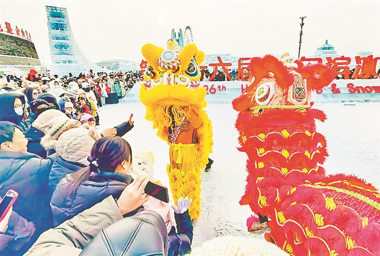2日,農(nóng)歷正月初五。哈爾濱冰雪大世界許多游客在參觀游玩,走在美麗的冰雕雪塑間,如同進入一個童話世界。春節(jié)期間,人們不僅可以觀賞到美輪美奐的冰雪景觀,還可以看到精彩的舞獅、舞蹈表演,感受濃濃的節(jié)日氛圍。