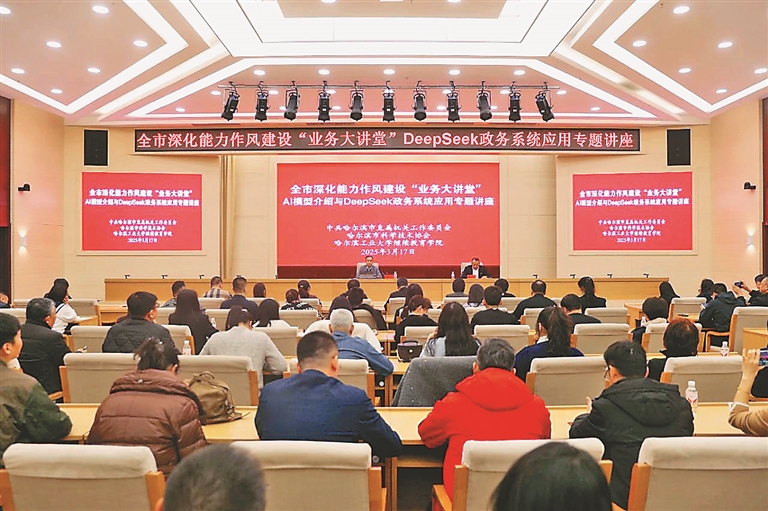 本報訊(記者 趙一諾)為加快提升機關(guān)干部數(shù)字素養(yǎng)與智能技術(shù)應(yīng)用能力,助力政務(wù)工作智能化轉(zhuǎn)型升級,近日,哈爾濱市直機關(guān)工委、哈爾濱市科協(xié)、哈爾濱工業(yè)大學(xué)繼續(xù)教育學(xué)院聯(lián)合舉辦哈爾濱市深化能力作風建設(shè)“業(yè)務(wù)大講堂”——AI模型介紹與DeepSeek政務(wù)系統(tǒng)應(yīng)用專題講座。哈爾濱市直機關(guān)和部分區(qū)縣共200余名機關(guān)干部參加學(xué)習(xí)。