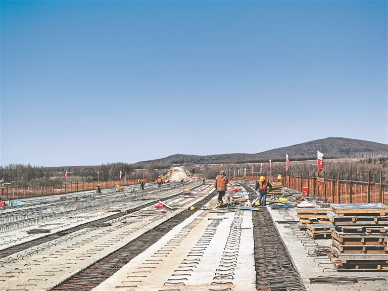 日前,在G1111鶴哈高速苔青至伊春段梅花河大橋的施工現(xiàn)場,數(shù)十名工人正熱火朝天地進行橋梁的鋼構(gòu)件加工和安裝工作。鶴哈高速苔伊項目3月16日正式復工復產(chǎn),為完善龍江高速公路網(wǎng)絡按下“加速鍵”。