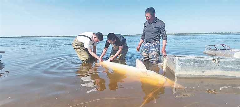 在黑龍江省水生動物資源養(yǎng)護中心技術(shù)人員的精心救治與蘿北縣和遜克縣漁政部門的協(xié)同努力下,這兩尾達氏鰉完成救治后,被及時放歸黑龍江干流蘿北段、遜克段,重歸自然。