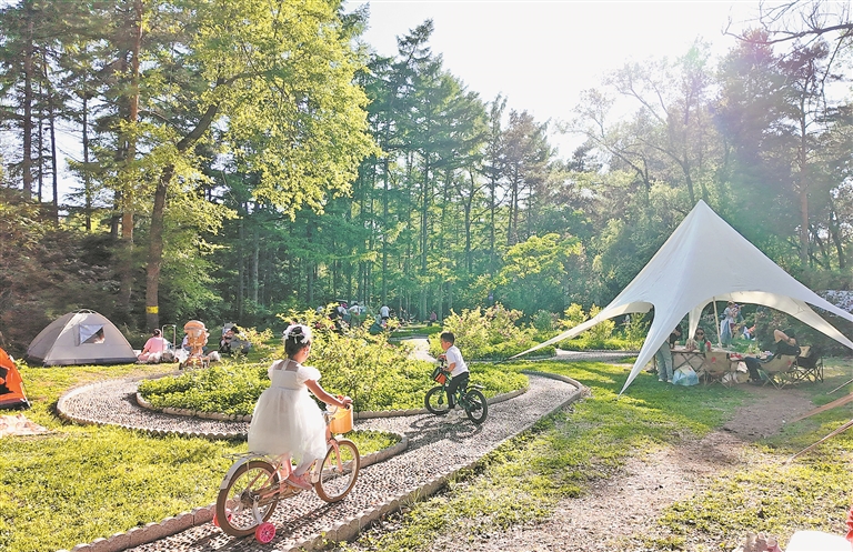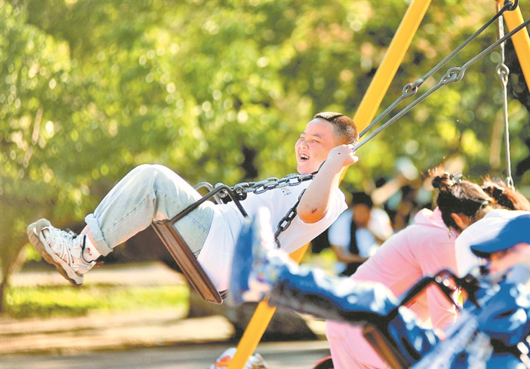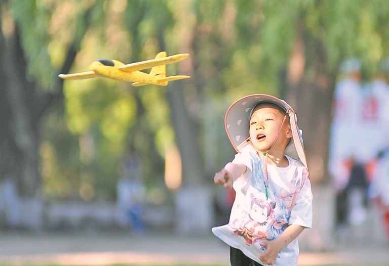 在省森林植物園內(nèi),孩子們在草坪上放風(fēng)箏、吹泡泡、追逐嬉戲,盡情享受假日好時(shí)光。