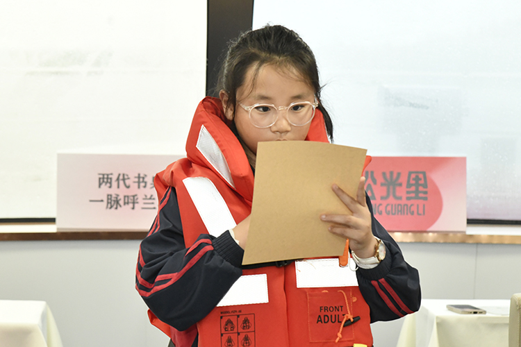 活動在《呼蘭河傳》朗讀片段的音曲播放中拉開帷幕。30余位文學愛好者與青少年閉眸冥想,在江水潺潺聲中走進蕭紅筆下的呼蘭河世界。15組家庭依次分享對蕭紅及其作品的認知,動情朗讀《呼蘭河傳》經典段落——當“嚴冬一封鎖了大地的時候”等文字在江面上回蕩,百年前的市井煙火與眼前的江河風光悄然重疊。