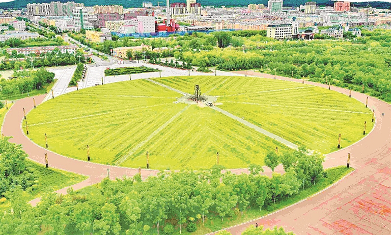 距離體育場(chǎng)不遠(yuǎn),有一處數(shù)千平方米的休閑廣場(chǎng)。廣場(chǎng)周邊新鋪了多條紅色慢行步道,是市民們散步休閑的好去處。在中心區(qū)域,工人們正建設(shè)雕塑,為中外游客打造一處美麗的打卡點(diǎn)。