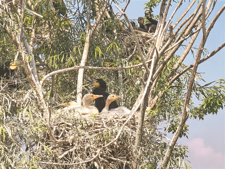 本報(bào)訊(孫智勇 記者董新英)近日,黑龍江肇東千鶴島旅游風(fēng)景區(qū)傳來(lái)令人振奮的消息,工作人員在日常鳥(niǎo)類(lèi)監(jiān)測(cè)中,驚喜發(fā)現(xiàn)一窩全國(guó)罕見(jiàn)的白鸕鶿在巢穴中。這也是千鶴島旅游風(fēng)景區(qū)首次記錄到白鸕鶿的蹤跡,為區(qū)域生物多樣性研究提供了全新樣本。